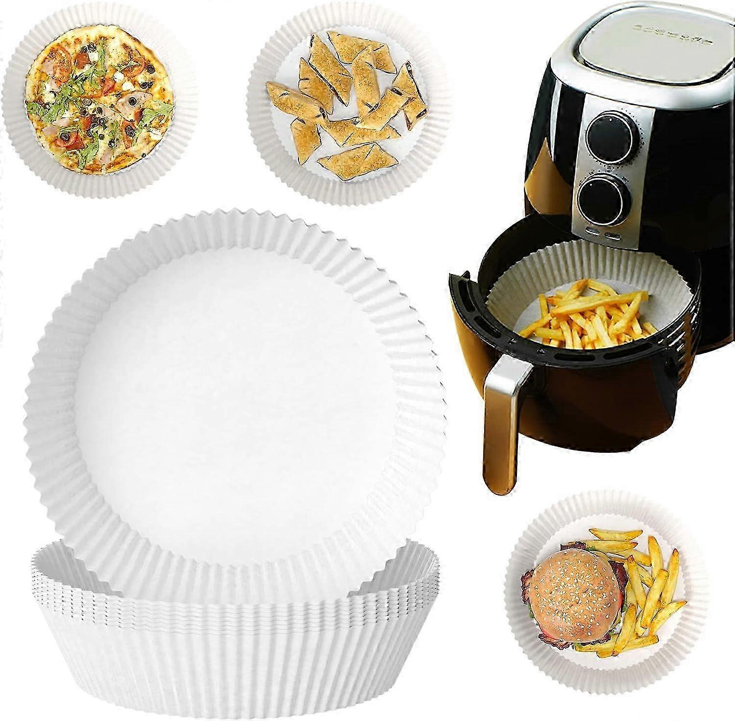 Welcome to our store Keep the air fryer cleanThe air fryer baking paper can effectively prevent food residue and oil stains from remaining inside the fryer, extend the service life of the fryer and reduce cleaning time, and is a necessary accessory for the air fryer. You can fully enjoy your meal without worrying about spending energy and time on cleaning. Convenient round designThe air fryer baking paper has a bowl-shaped design , no need to tear, bend, cut or bend, sufficient height is perfect for holding food, oil stains will not spill over the edge Material SafetyFood grade parchment paper, non-porous, waterproof, oil-proof, non-stick, good heat resistance, can withstand temperatures up to 230C without affecting the taste of food. The material is degradable, clean and environmentally friendly. Wide UseSuitable for air fryers, microwave ovens, ovens, stoves, etc. The paper liner can be used for baking, roasting, frying or serving, it is light and practical, for home baking, camping, barbecue, summer parties, etc. > Reminder The hot air fryer paper comes in 50 packs and 100 packs, the size is 20x16x4.5cm, please do not use the air fryer parchment paper alone without food,The Failure to do so may cause the top of the steam fryer to heat up and damage the fryer.