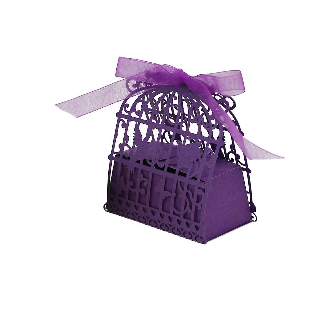20x Bird Cage Laser Cut Gift Candy Box w/ Ribbon Wedding Party Favor Violet
