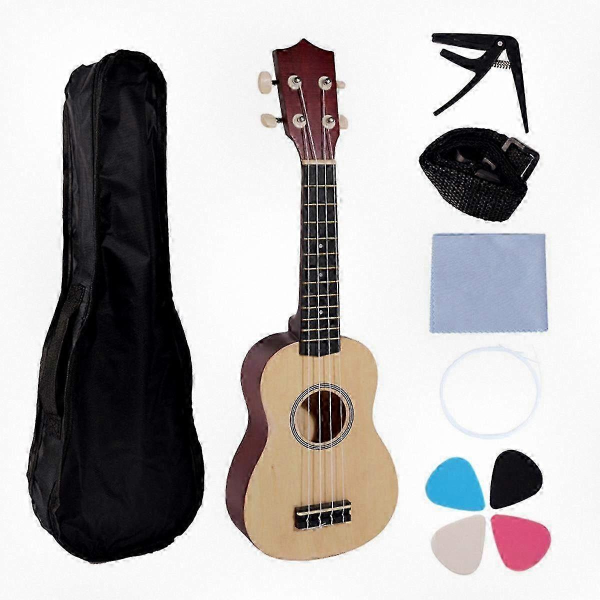 21 inch beginner ukulele set with 4 strings, basswood body, carrying bag, clip and 4 picks for easy travel and practice