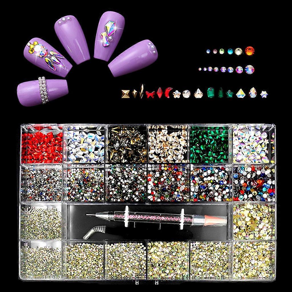 21 Grids Glass Nail Art Decorations Multi Shapes with Dual-ended Dotting Pen Tweezers Set Nails Ornaments Manicure Tips Decor DIY Crafts Accessories