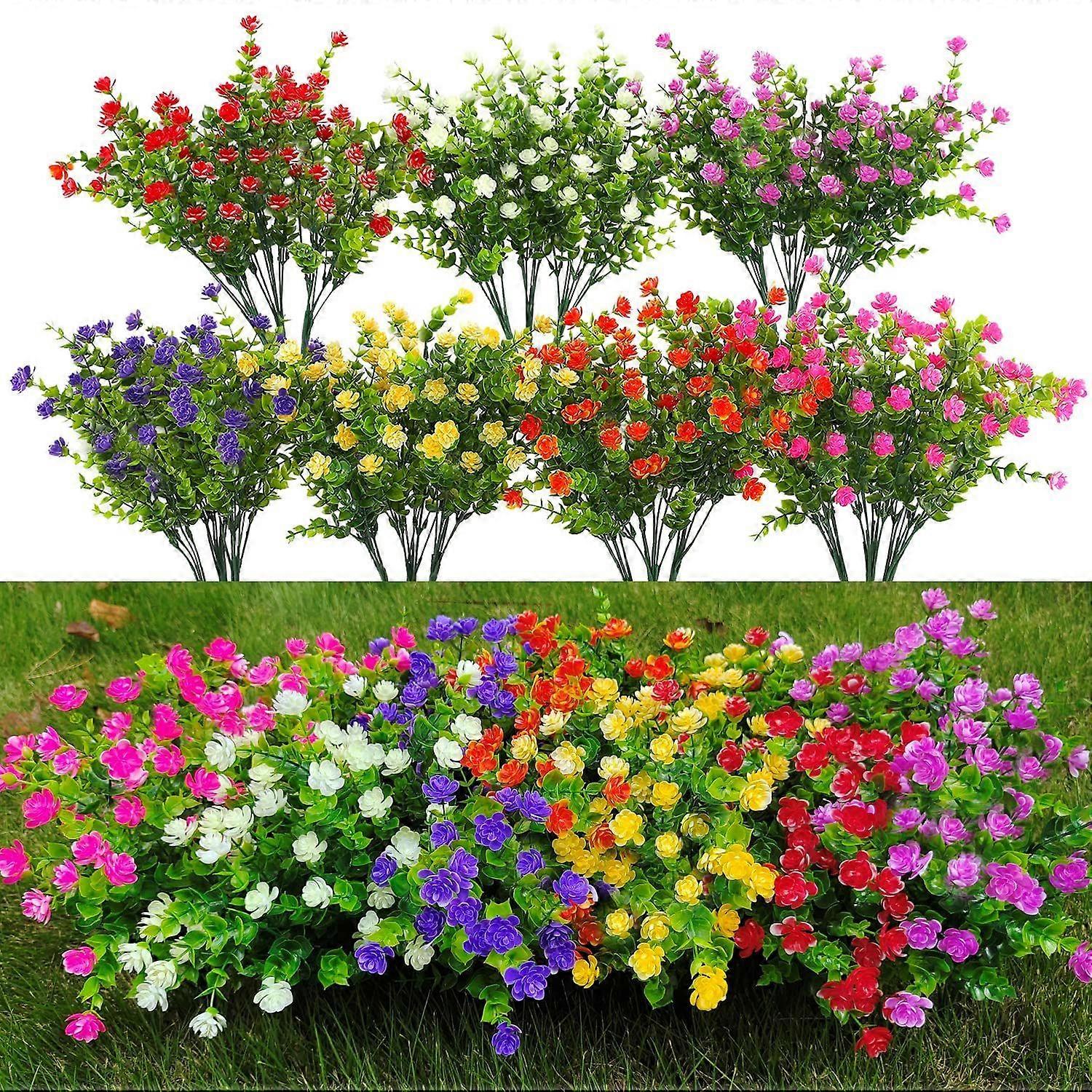 21 Bundles Outdoor Faux Plants UV Resistant Faux Bushes Plastic Artificial Flowers Fake Outdoor Plants for Home Garden Decor (7 Colors)