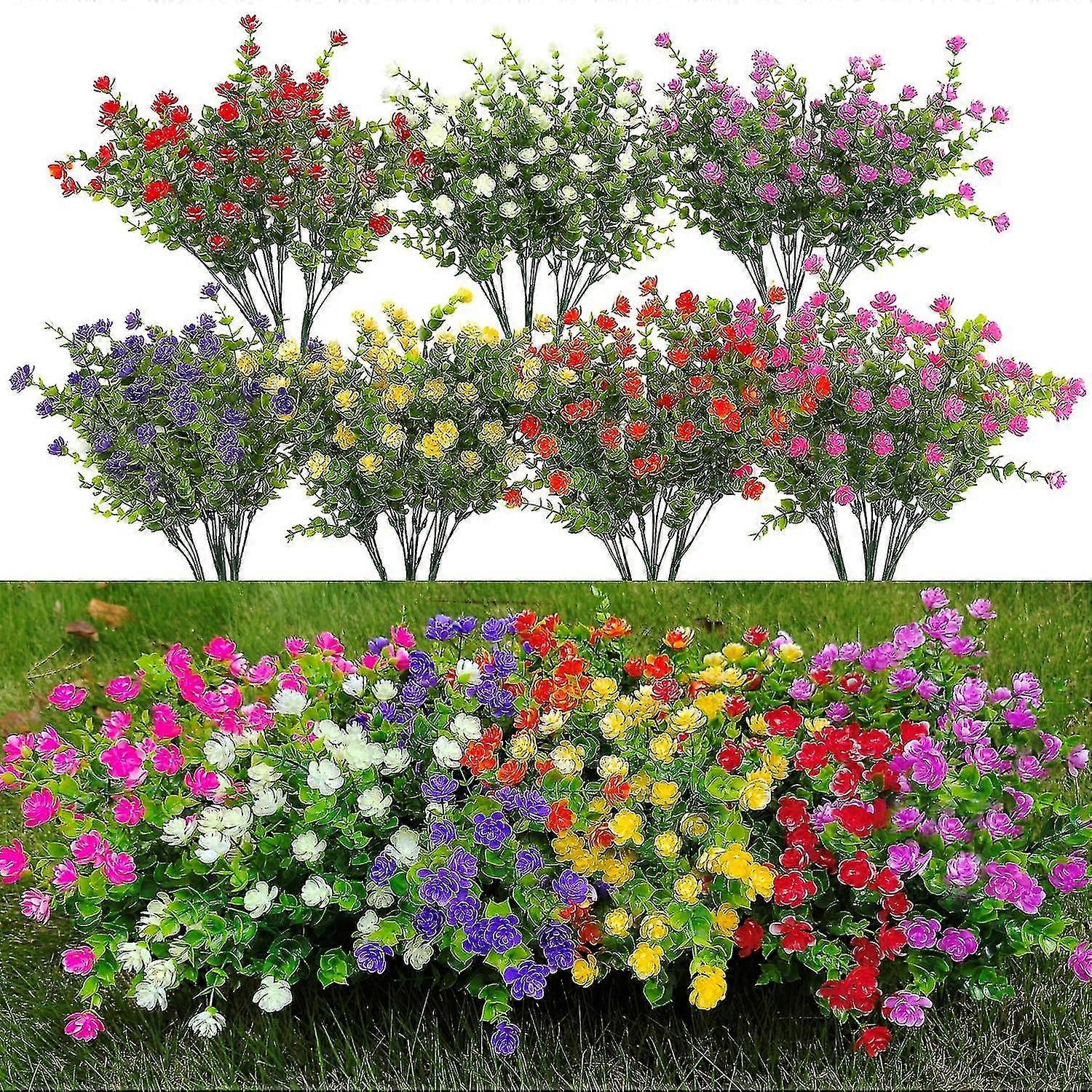 21 Bundles Outdoor Faux Plants Uv Resistant Faux Bushes Plastic Artificial Flowers Fake Outdoor Plants For Home Garden Decor (7 Colors)-