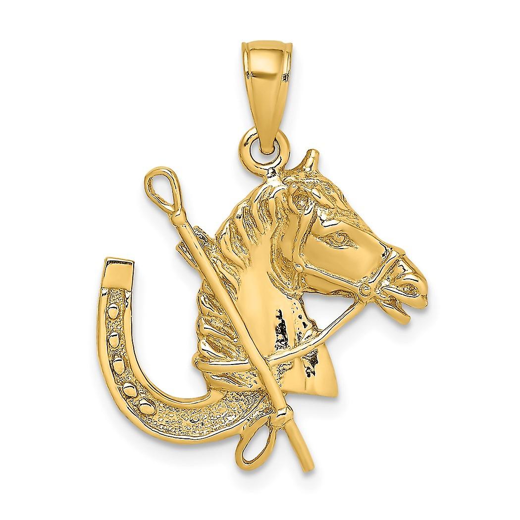 21.35mm 10k Solid Yellow Gold Horse Head With Shoe and Crop Charm Pendant Necklace for Women
