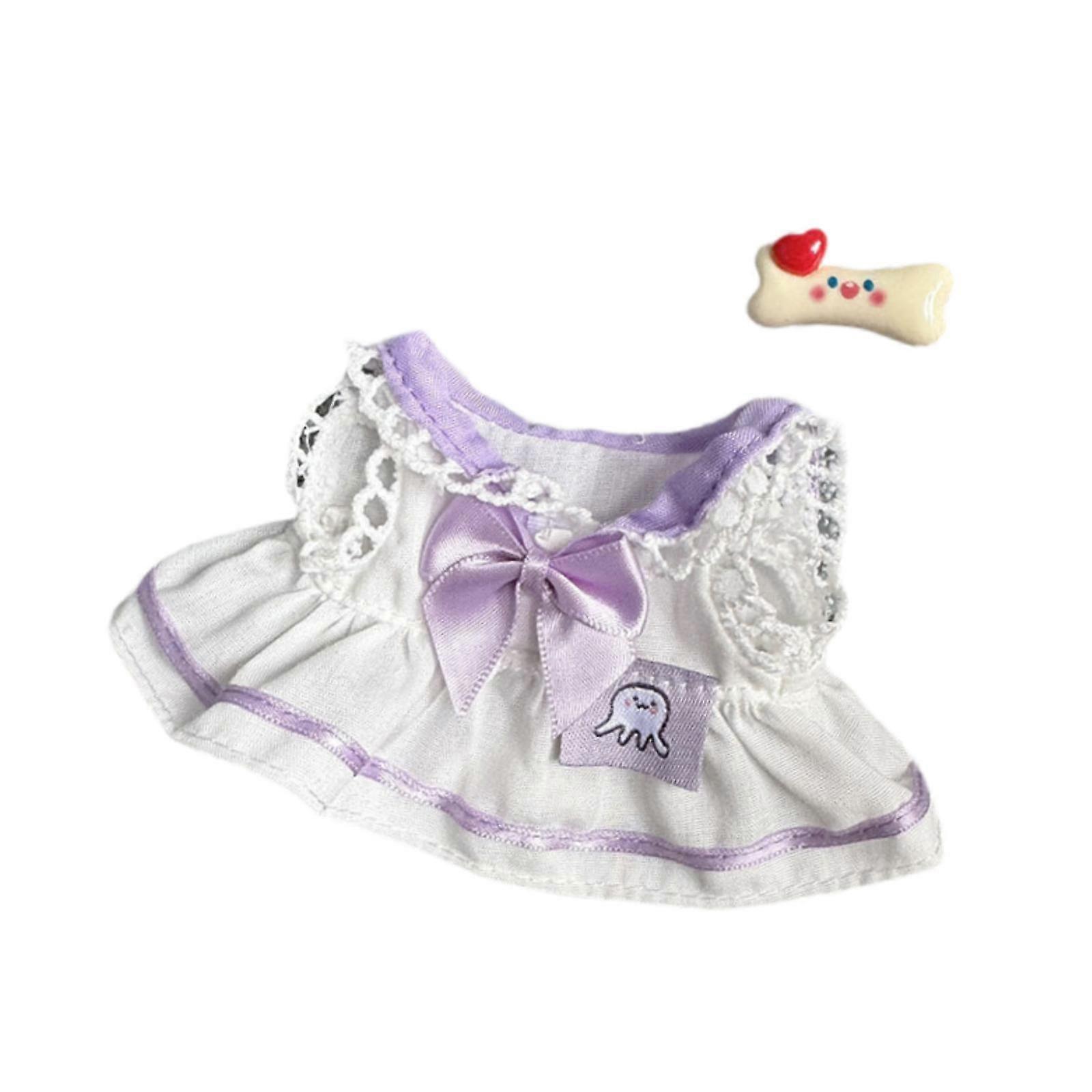 2 Pieces Dolls Dress with Hairpin Accs Miniature Clothes for 15cm 17cm Dolls Violet