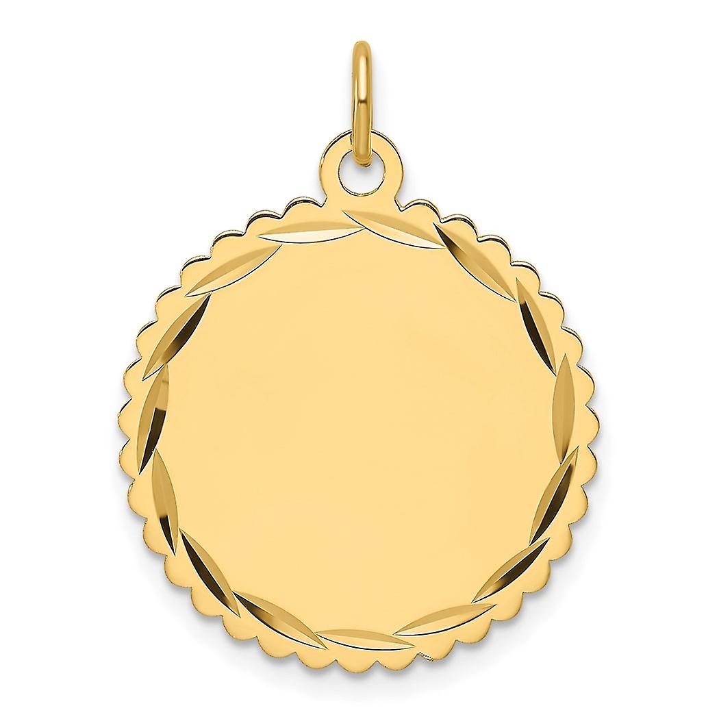21.5mm 14k Solid Yellow Gold .018 Gauge Engravable Scalloped Disc Charm Pendant Necklace for Women
