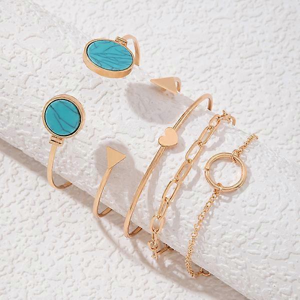21601-Blue Fashion Women's Faux Set Open 5 Pcs Bracelet Geometric Set