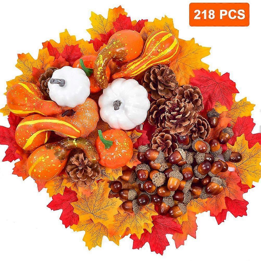 218 Pcs Assorted Small Artificial Pumpkins and Gourds with Acorns Pinecones Maple Leaves Sunflowers Fall Harvest Decoration Set for Thanksgiving Hallo