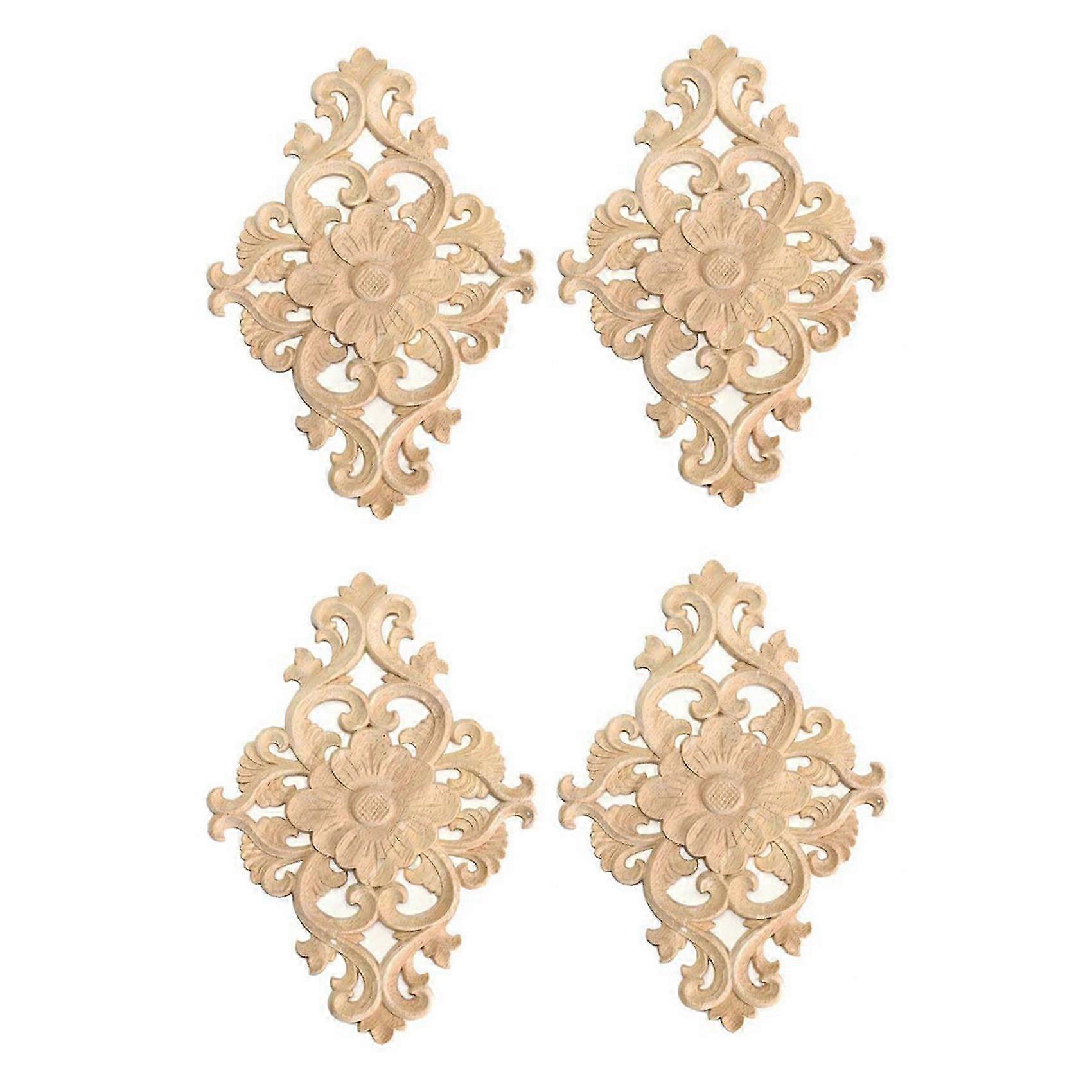 21x15cm Wood Carved Unpainted Onlay Applique, 4Pcs Set, Furniture Decor