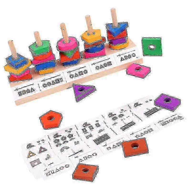 21x18.7cm Colorful Toy Abacuses 1 Set Geometric Cylinder Stacker Wooden Educational Toy Geometry