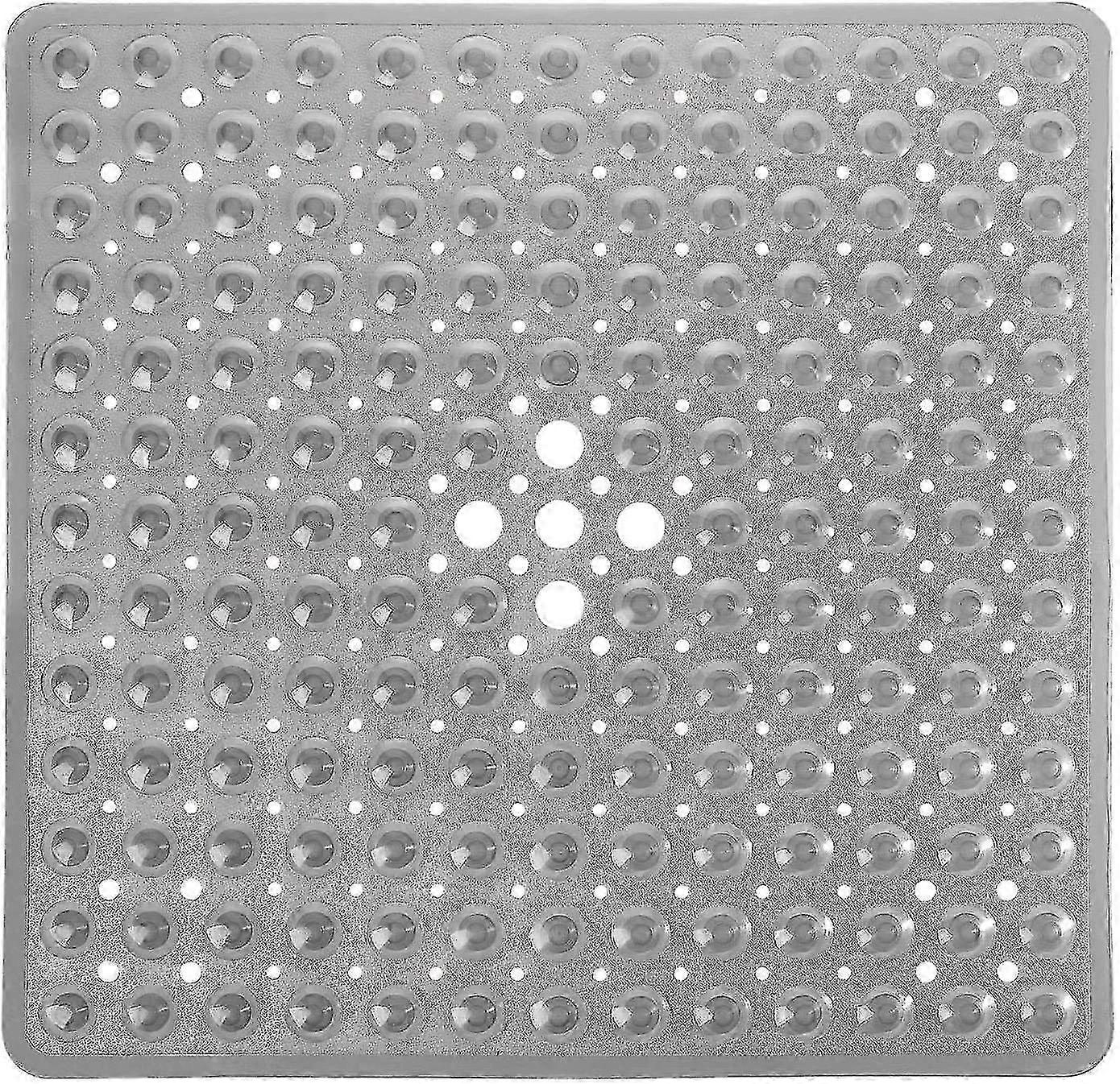 21x21 Non-Slip Shower Mat for Bathtub, Drain Holes, Machine Washable, Clear Gray