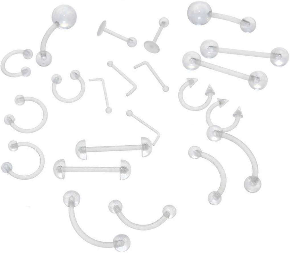 22pcs 14G 16G 18G 20G Clear Flexible Bioplast Retainer Navel Belly Ring Eyebrow