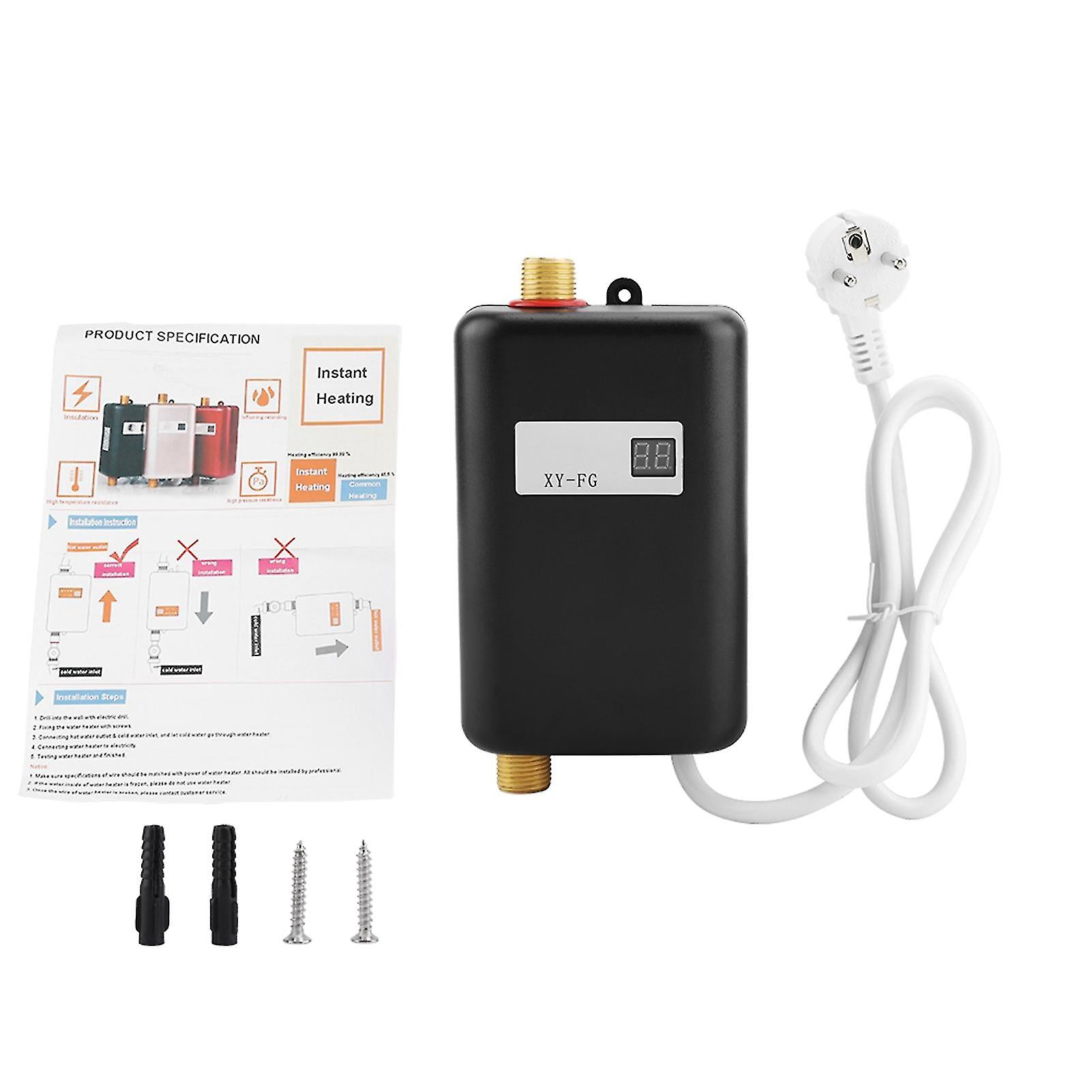 220V 3800w Mini Electric Tankless Instant Hot Water Heater Bathroom Kitchen Washing Eu Plug Black