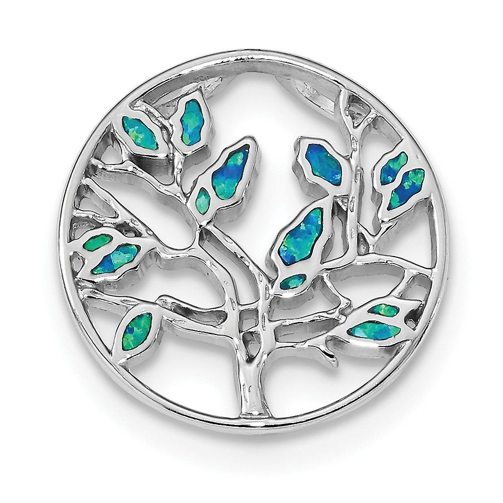 22.4mm 925 Sterling Silver Rhodium Plated Blue Simulated Opal Tree Pendant Necklace-Pendant for Women
