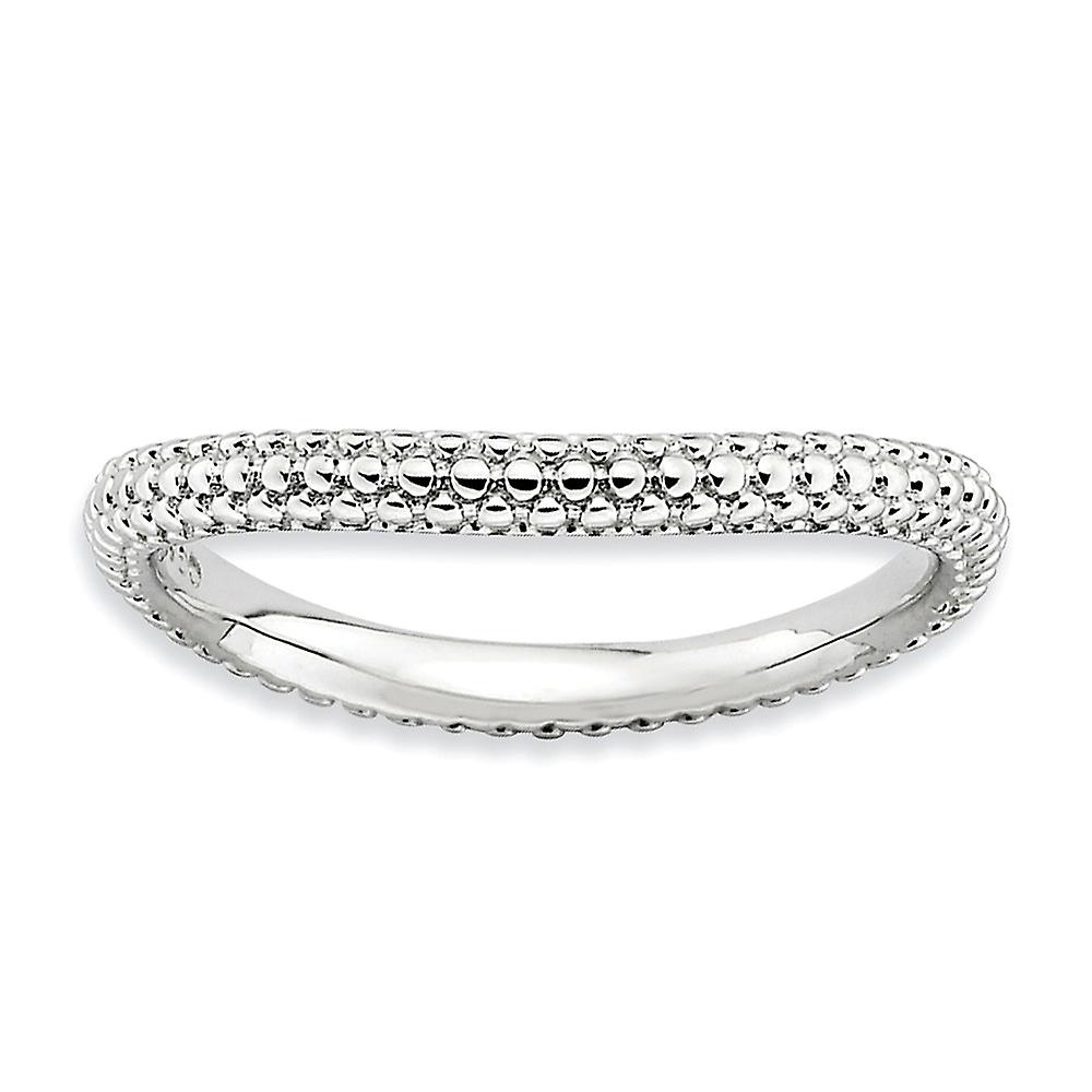 2.25mm 925 Sterling Silver Patterned Stackable Polished Rhodium Plate Wave Ring-Stackable-Ring for Women - Ring Size: 5
