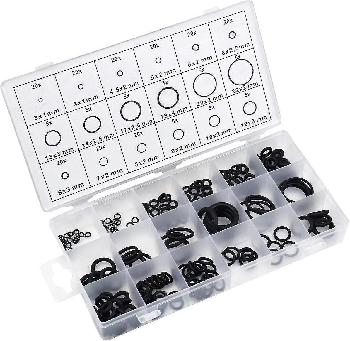 225PCS 18 Sizes Rubber O-Ring Assortment Kit, 3mm-22mm Universal O-Ring Seal Gasket Assortment, Vehicle Repair Air Conditioning Fittings