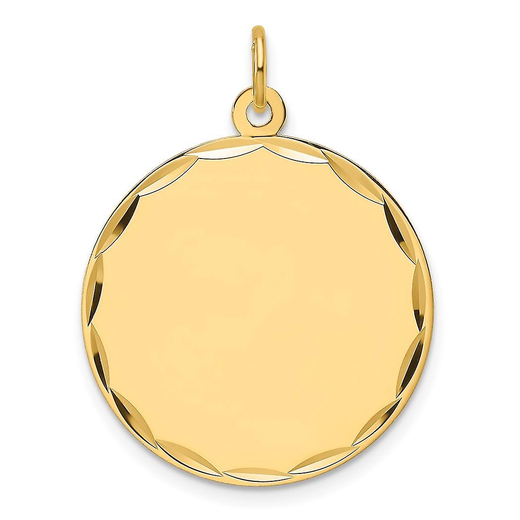 22.9mm 14k Solid Yellow Gold Etched .011 Gauge Engravable Round Disc Charm Pendant Necklace for Women