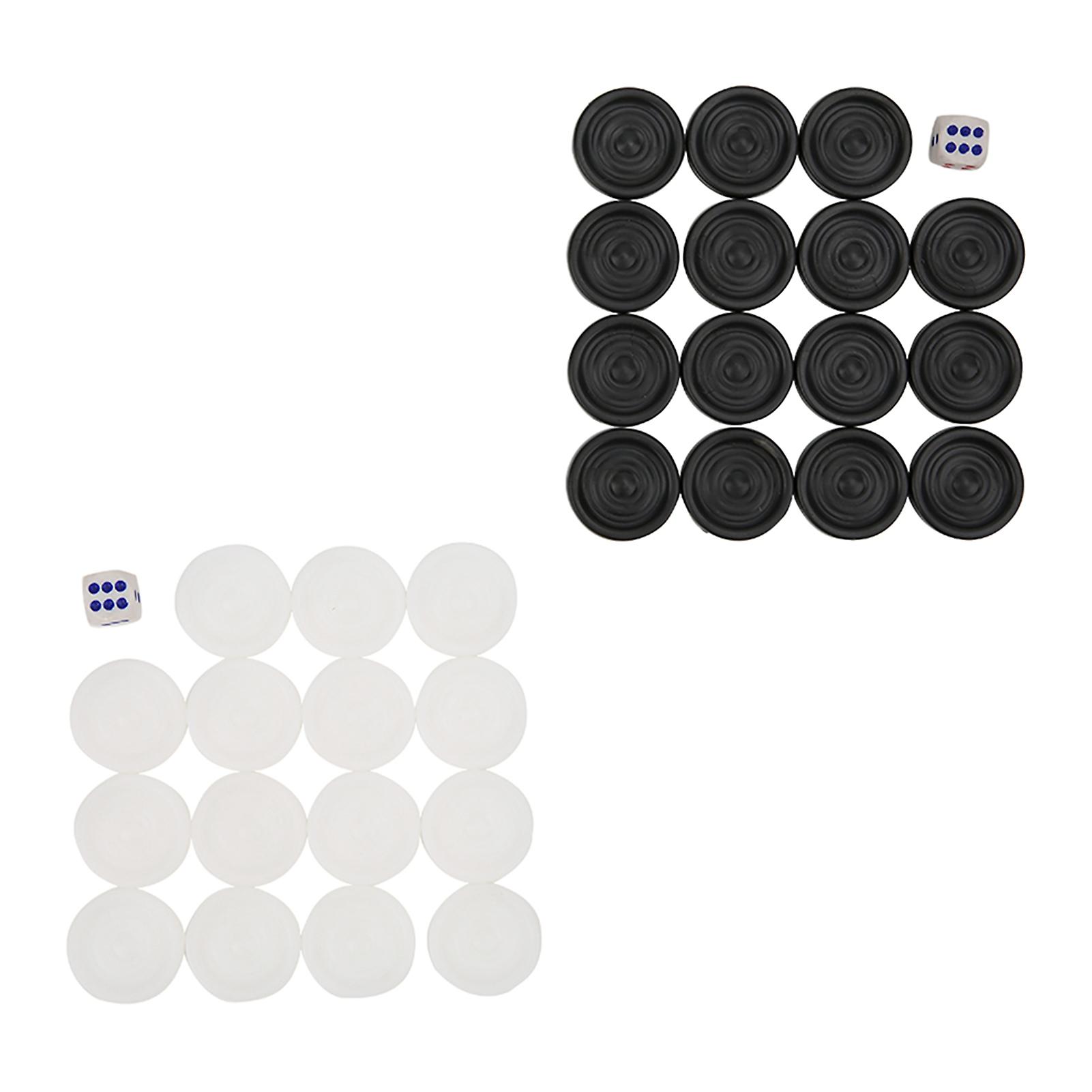 22mm Black White Backgammon Chips Set 32pcs with 2 Dice