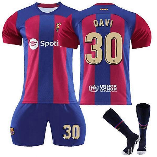 23-24 Barcelona Home Football Jersey for Kids No. 30 Gavi 26