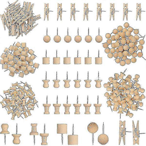 230 Pieces Wood Needle, Push Pins Round Head with Pieces Hat Shaped Wood Clips