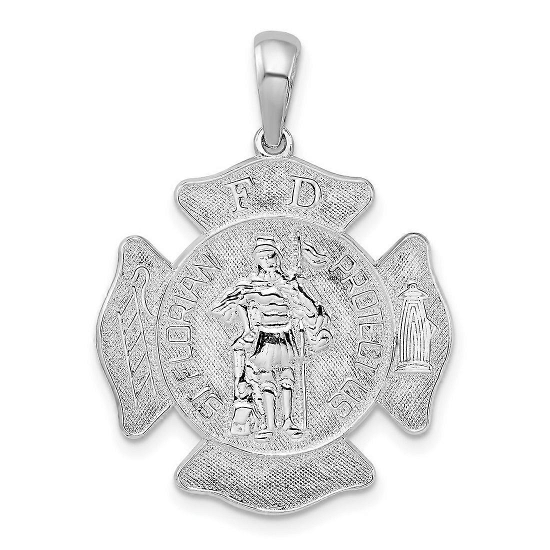 23.5mm 925 Sterling Silver Rhodium Plated St. Florian Fire Dept. Medal Pendant Necklace-Pendant for Women