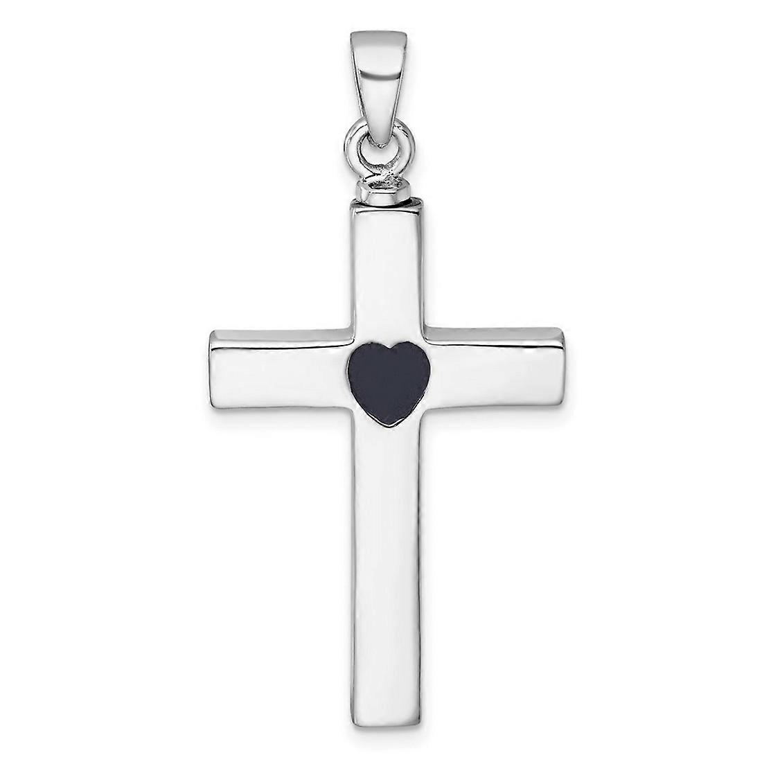 23.8mm 925 Sterling Silver Rhodium Plated Religious Faith Cross Enameled Love Heart Ash Holder Pendant Necklace-Pendant