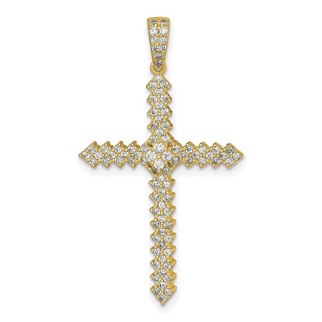 23mm 925 Sterling Silver Gold tone Polished Pave Cubic Zirconia Religious Faith Cross Pendant Necklace-Pendant for Women