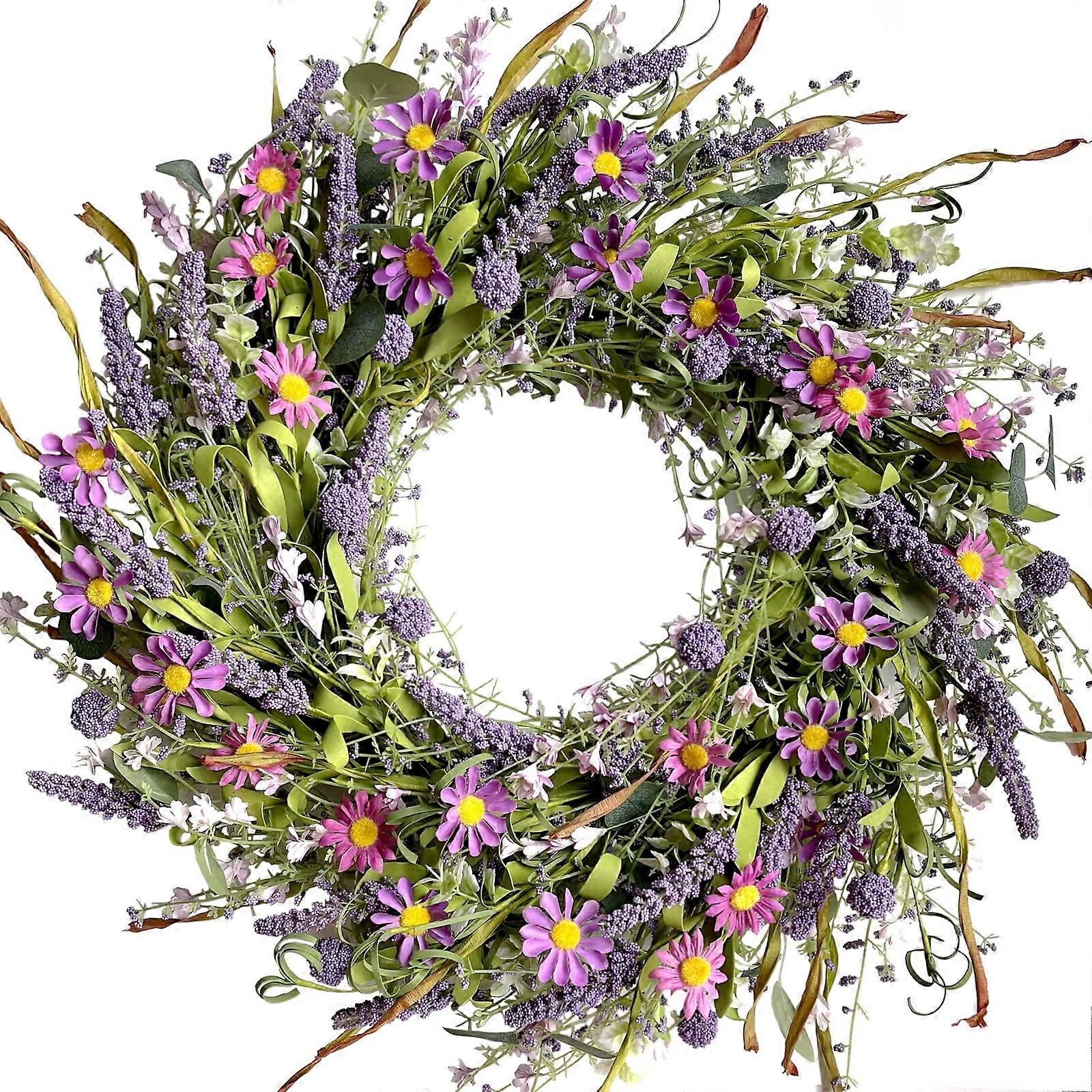 - Spring Flower Front Door Wreath : This beautifully crafted wreath features a lush and vibrant design, perfect for enhancing your home decor. The base is adorned with a variety of leaves, while an array of colorful wildflowers blooms at the top, making it a standout piece for any entrance. - Generous Size : With an outer diameter of 24 inches, this wreath is ideal for those seeking a large and visually striking addition to their home. It fits perfectly on front and back doors, inside entryways, and even as a charming window or yard decoration. - Durable Grapevine Construction : Designed for longevity, the wreath is built on a sturdy natural grapevine base. This ensures that it maintains its shape and beauty season after season, providing lasting enjoyment. - Perfect for Home Warming Gifts : If you're attending a housewarming party, this everyday wreath makes a thoughtful and delightful gift for friends and family. Its classic design complements various decor styles, making it a versatile addition to any home. Use Scenarios : 1. Front Door Display : Hang this wreath on your front door to welcome guests and make a lasting first impression. 2. Indoor Decor : Use it as an eye-catching centerpiece inside your home, bringing a touch of nature and color to your living space. 3. Seasonal Transition : Transition your home decor with ease by switching this wreath in and out as seasons change, keeping your environment fresh and inviting. Experience the beauty and charm of nature with this exquisite wreath, designed to elevate your home while providing a warm and welcoming touch.