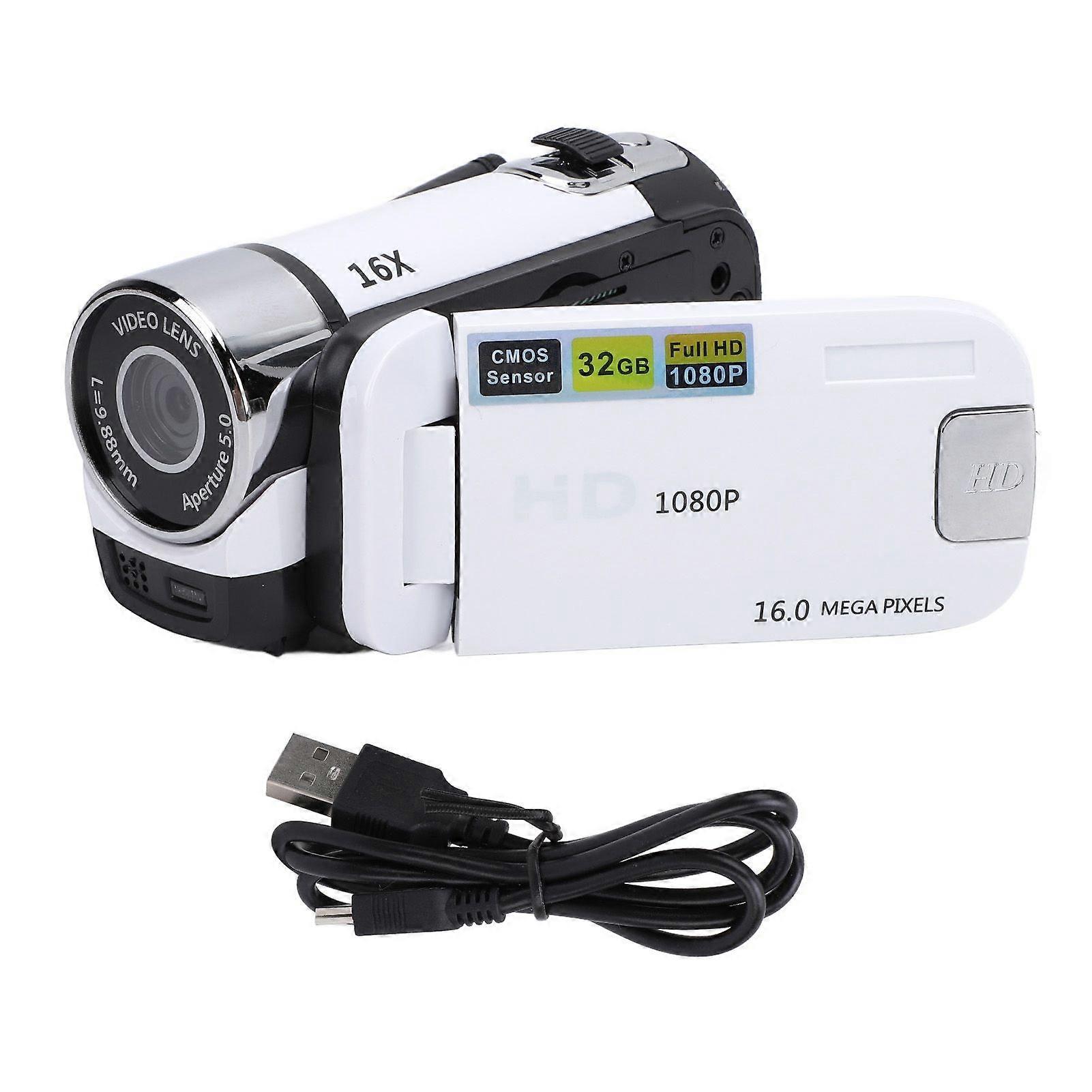 Feature:1. HD PICTURE QUALITY: This video camera has a 2.4 inch screen, supports 1080P resolution, 16x digital zoom and 16MP pixels, supports recording while charging, HD output, and supports external microphone.2. SUPPLEMENTAL LIGHT, PORTABLE DESIGN: The front of the camera is equipped with a fill light, which can fill the light when taking pictures. The camera is small enough to carry around and easy to use.3. MULTIFUNCTIONAL: Support selfie, electronic anti shake, cyclic recording, time watermarking and other functions, support video pause function, make your use more convenient.4. EXTERNAL DEVICES: The camera supports external microphone, the bottom is also designed with a 1/4 inch threaded hole, convenient for external tripod and other equipment. Camera comes with a USB port. You can use the USB cable to connect to a computer to view photos and videos.5. APPLICATION SCENARIO: This video camera is lightweight, portable, and multi functional, suitable for growth records, travel, wedding, campus records and other occasions.Specification:Item Type: Video CameraMaterial: ABSScreen: 2.4 Inch ColorMaximum Video Resolution: 1080PMaximum Photo Pixels: 16MPDigital Zoom : 16xStorage Card: Maximum Support 32GB (Excluded)Shutter : Electronic Battery Information : Lithium Battery, 1020mAh (Built In).Package List:1 x Video Camera1 x USB Cable1 x Instruction Manual