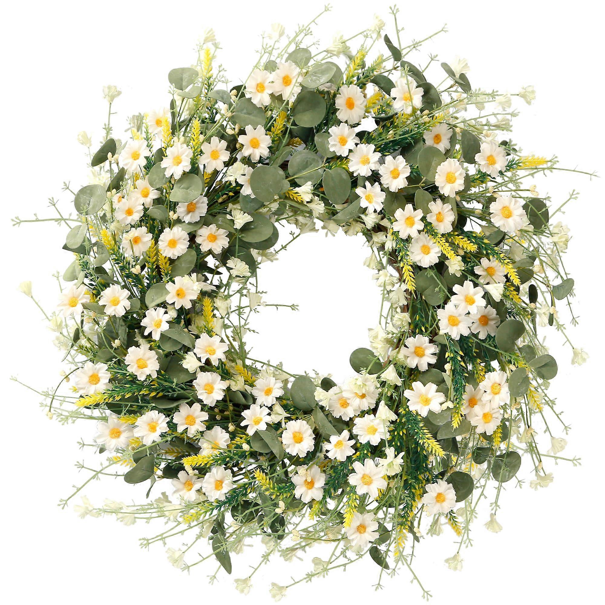 24 Inch White Daisy & Lavender Wreath - Eucalyptus Floral Decor for Rustic Weddings & Front Door Display
