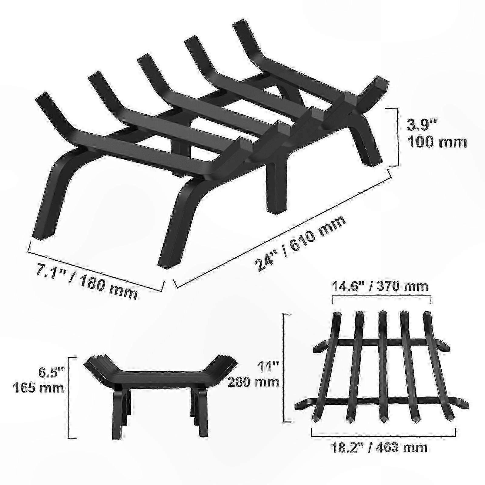24 Inch Durable Log Grate with 6 Legs, Powder-Coated Steel for Indoor and Outdoor Fireplaces