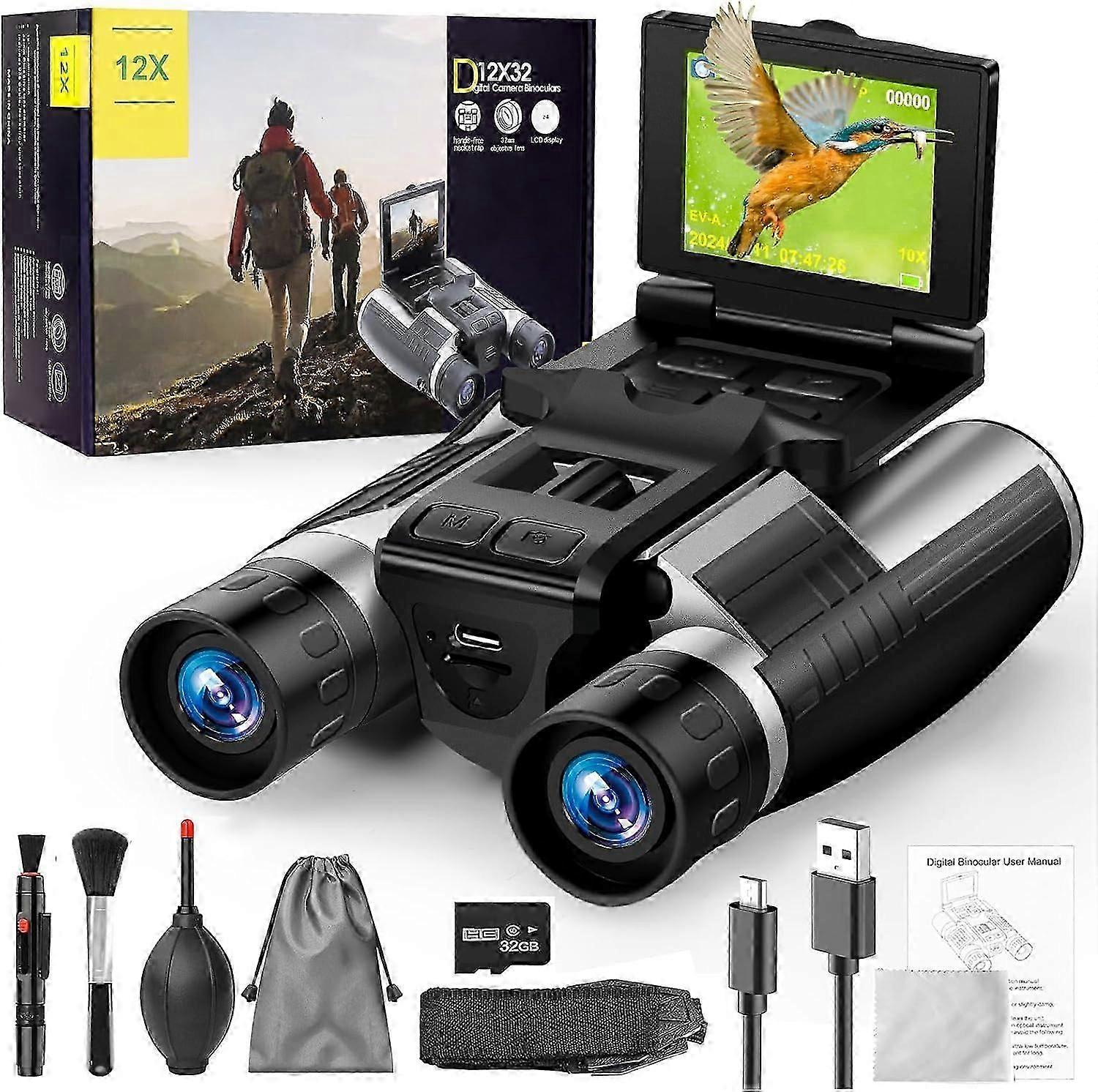 2.4" LCD Digital Binoculars with Camera 48MP 12X32 2.5K Videos HD Quality Ideal for Bird Watching, Concerts and Outdoor Adventures 32GB