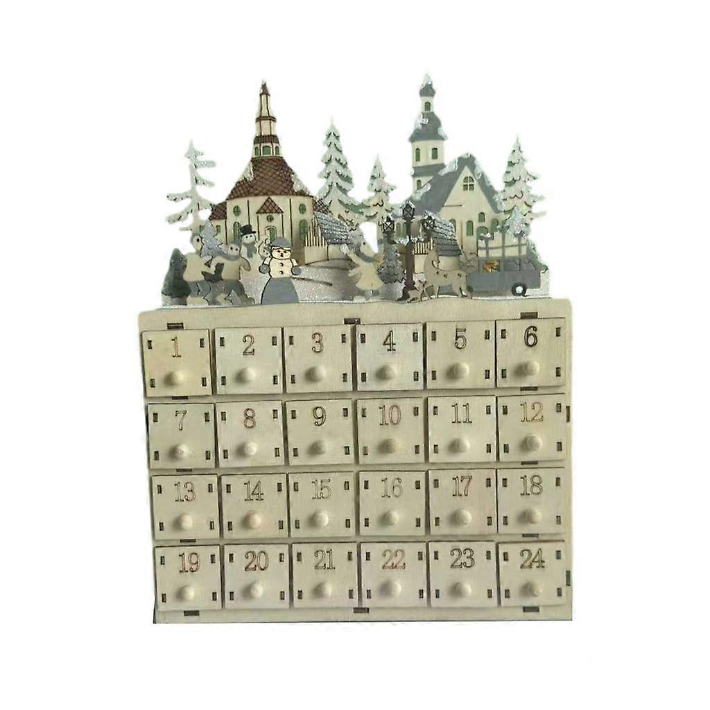 Wood Advent Calendar with 24 Wood Drawer Holiday Desktop Decoration Supplies