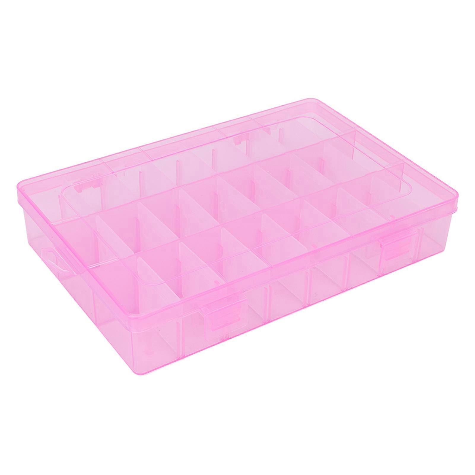24 Grid Nail Art Storage Box Plastic Rhinestones Bead Decoration Organizer Case Container Pink