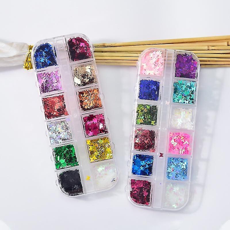 24 Grids Butterfly Sequins Nails Butterfly Nail Decoration Holographic Sequins Butterfly Nail Art Gl