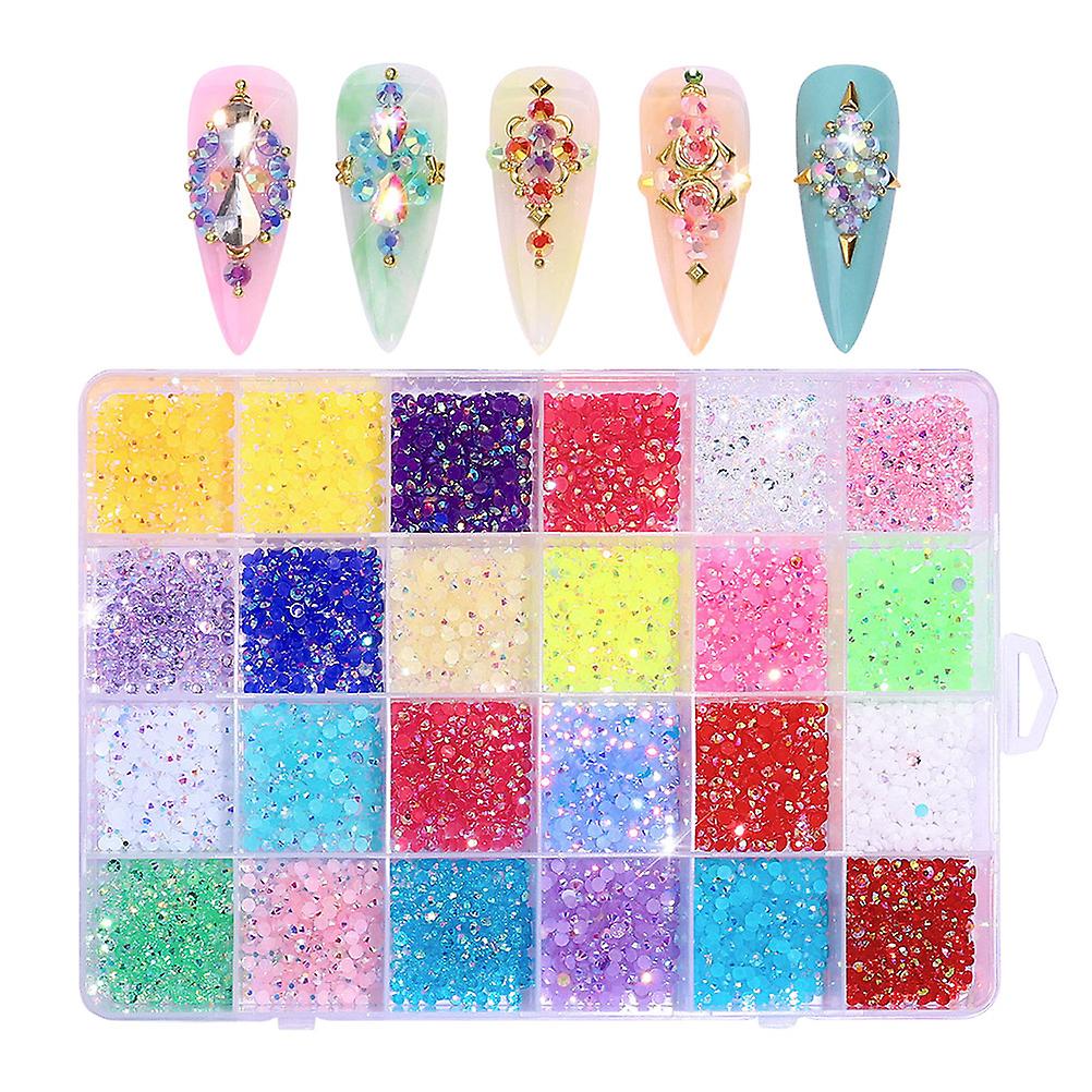 24 Grids 3500pcs Flat Back Resin Nail Art Tips for Acrylic Nails Manicure DIY Nail Decorations