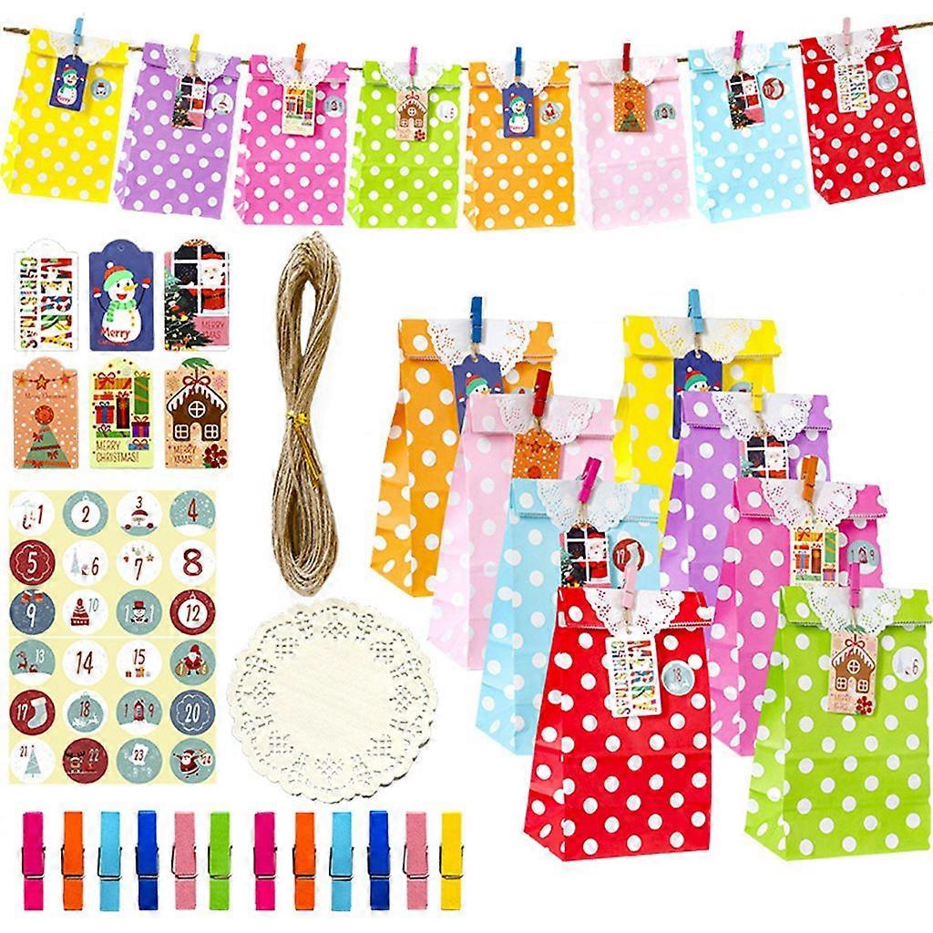 24 Sets Christmas 1-24 Advent Calendar Paper Candy Bag with Tags Clips Stickers