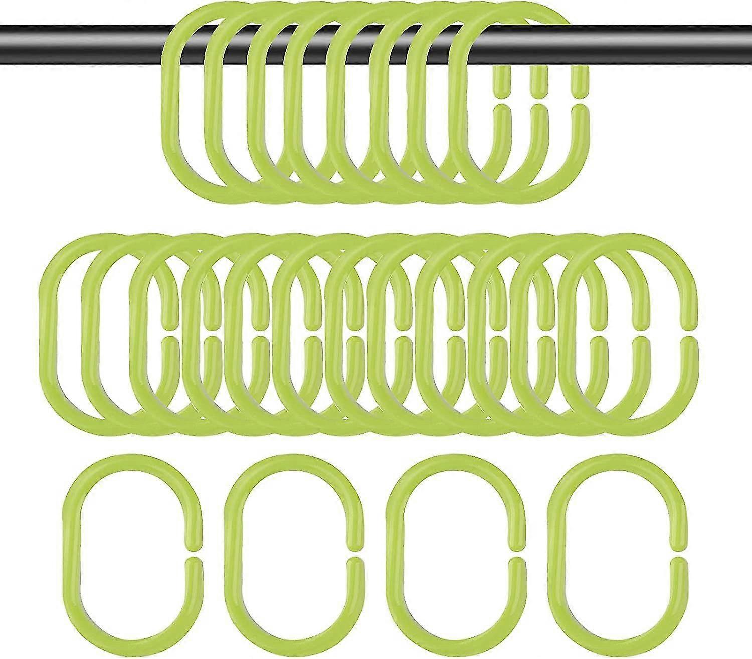 24 Pack Plastic Shower Curtain Rings Hooks C-Shaped (Green)