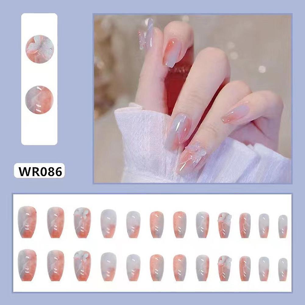24-Pack Romantic Champagne Bow Wearable Nail Patches Pure Desire Nail Art