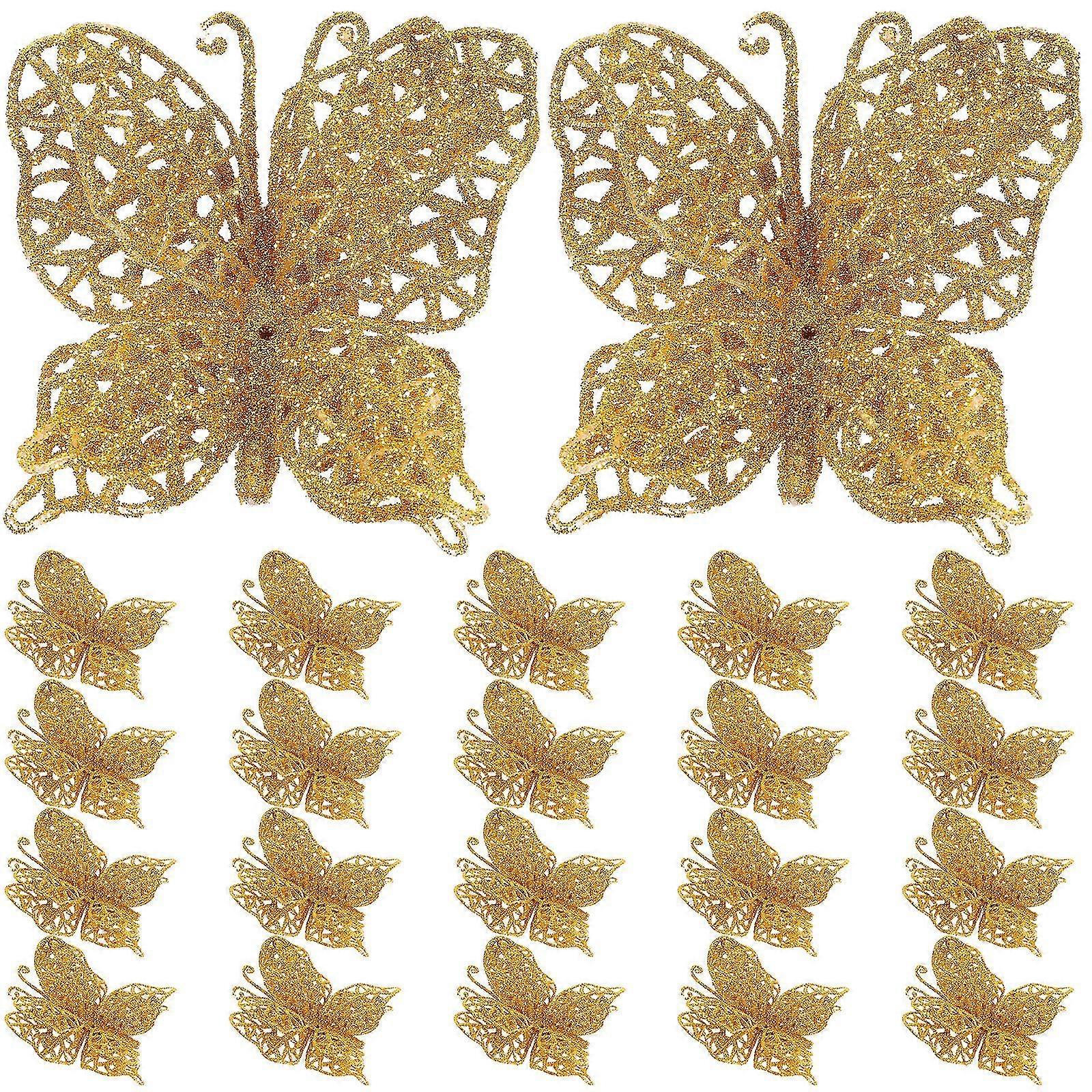 24pcs Christmas Tree Butterfly Decorations Glitter Hollow Butterfly Ornaments