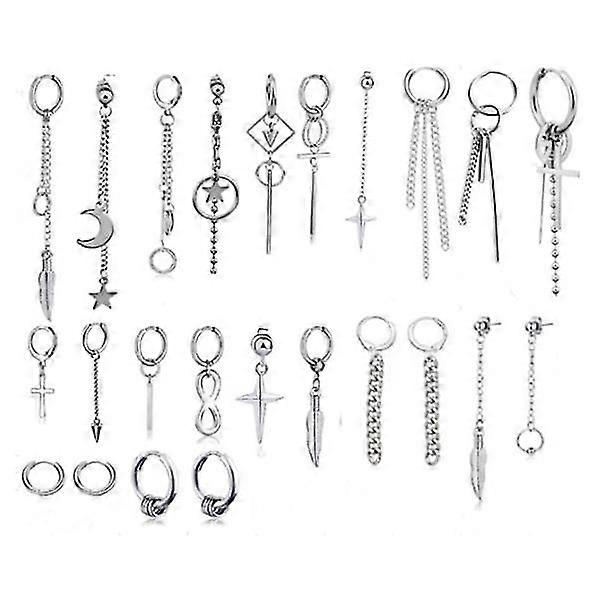 24 Pieces Cool Stainless Steel Huggie Hoop Earring Hinged Spring Dangle Earring