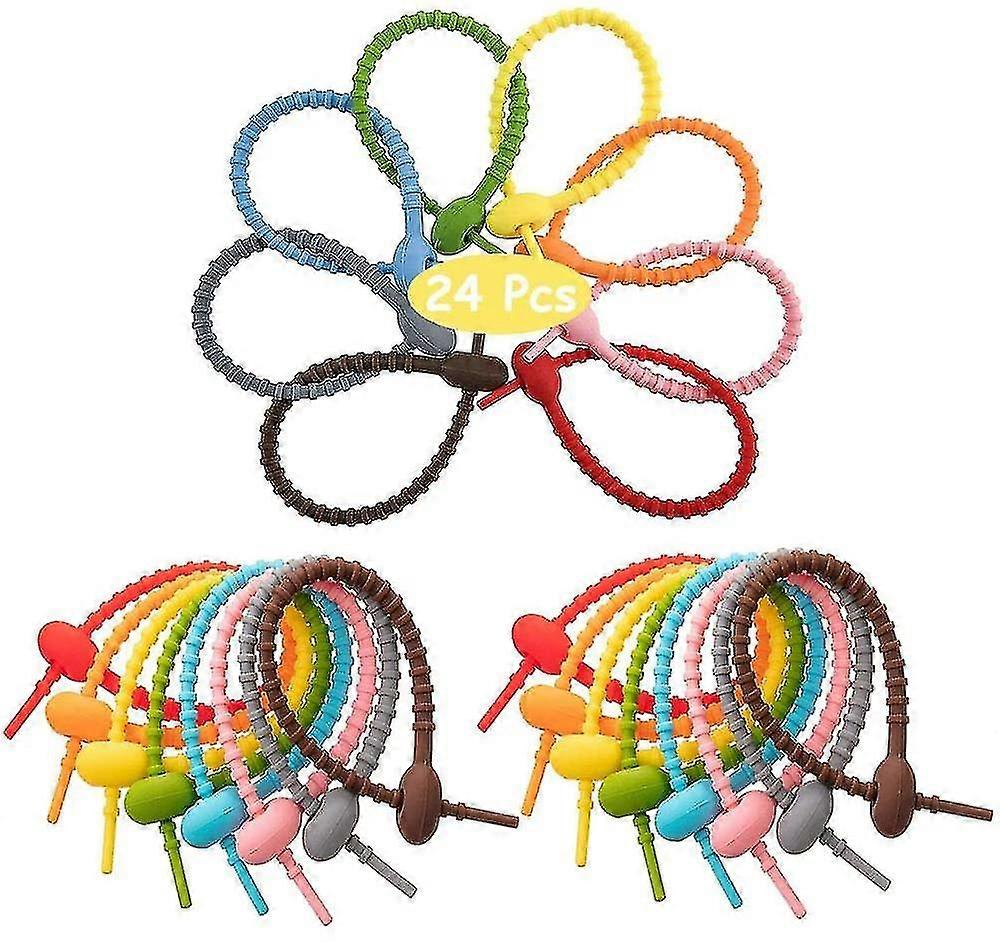 24 Pieces Silicone Cable Ties, Colorful Silicone Cable Ties, Colorful Silicone