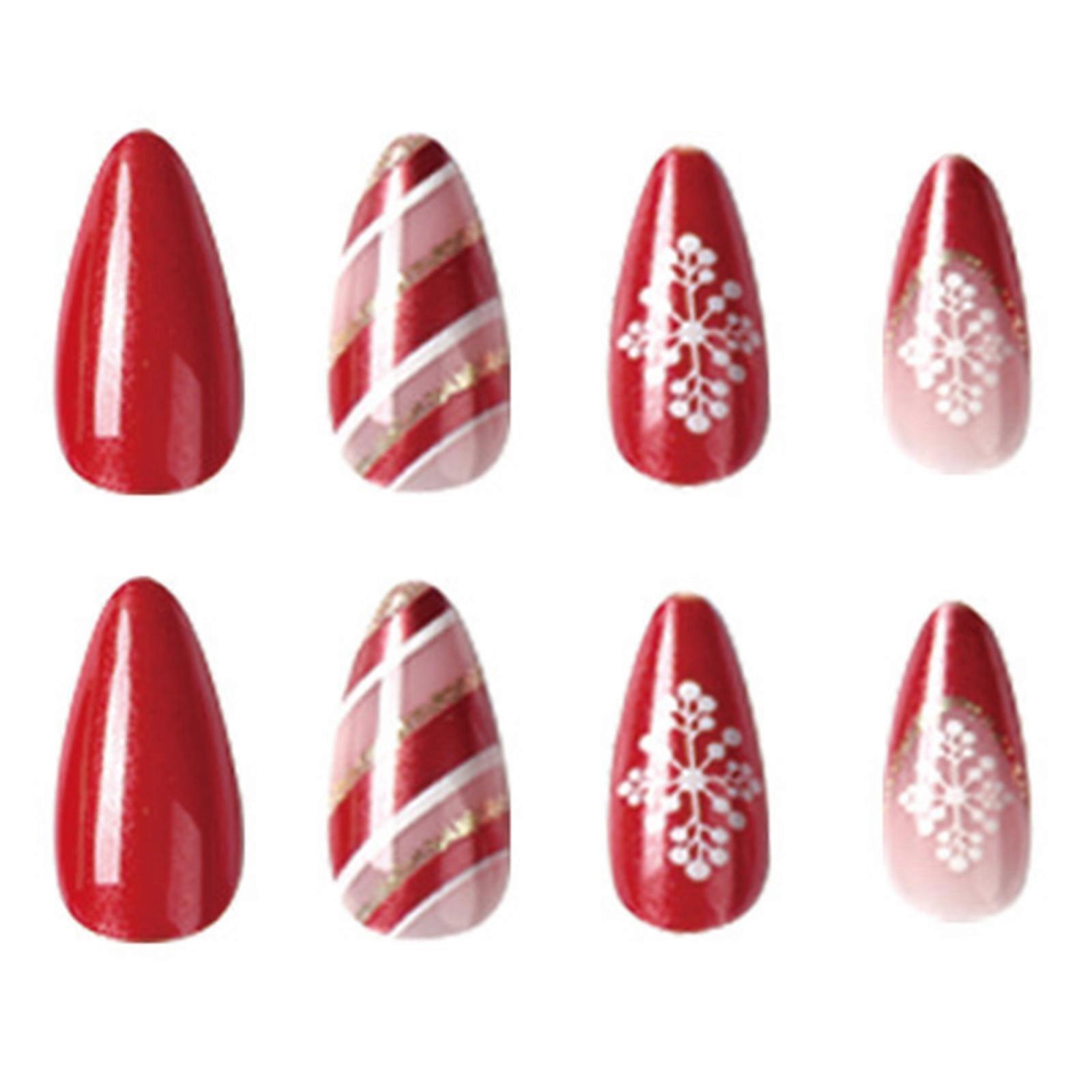 24pcs/Set Christmas Press On Nails Almond French Tip Medium Full Cover Press On Nail Acrylic Fingernail Nail Art Decor