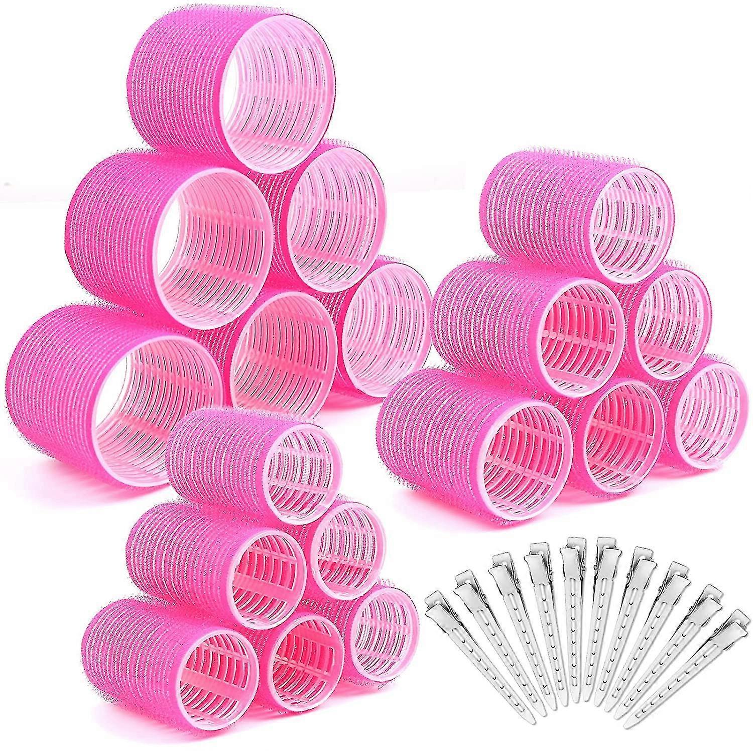 24 Pieces Hair Roller Set, 12 Pieces Large Self-adhesive Hair Rollers 63mm, 44mm And 12 Pieces Duckbill Cutting Clips For Long Medium Short Salon Hair