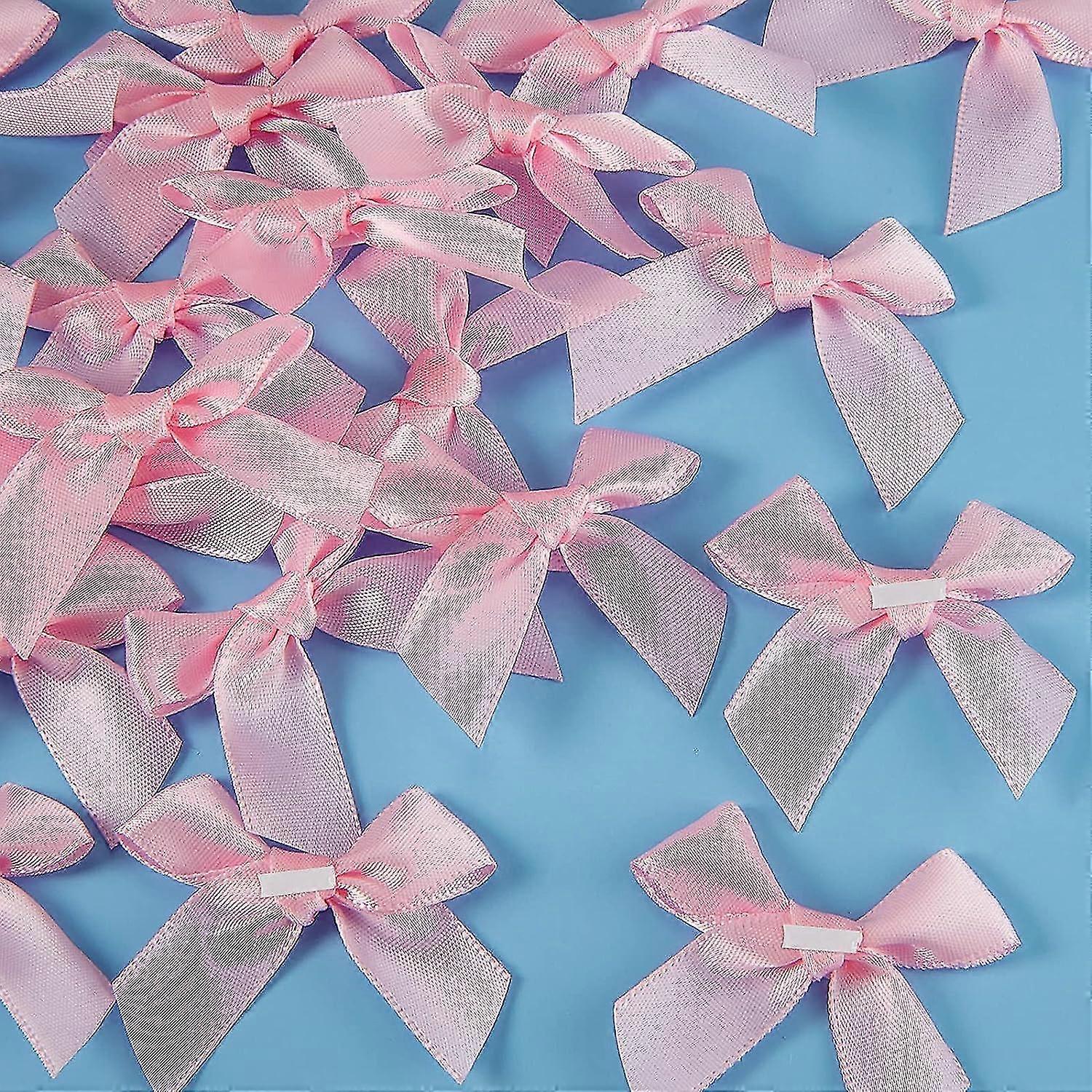 24 Pieces Self Adhesive Satin Ribbon Bows For Diy Crafts Valentine's Day Baby Shower Card Making Embellishments, 5cm Width (pink)