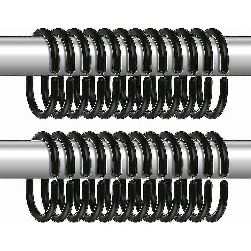 Set Of 24 Plastic Shower Rings, Accessory Rings For Curtains, 24 Single Hooks - Black