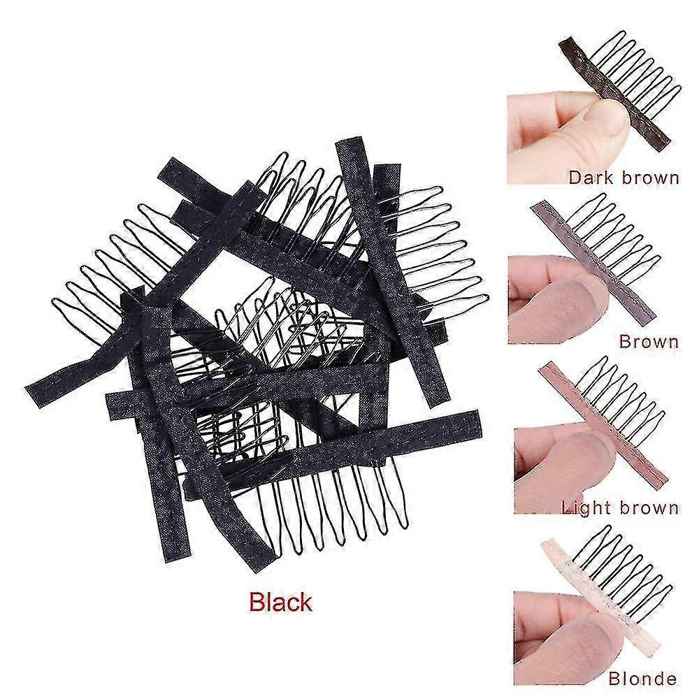 24 Pcs Wig Combs with 7-Teeth Steel Clips and Cloth Combs (Black) Suitable for Certain Brands