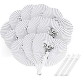24個のウェディングペーパーファン、ハート型の白いペーパーファン、折りたたみ式ポケットファン、ウェディングの記念品パーティーバッグフィラーに対応