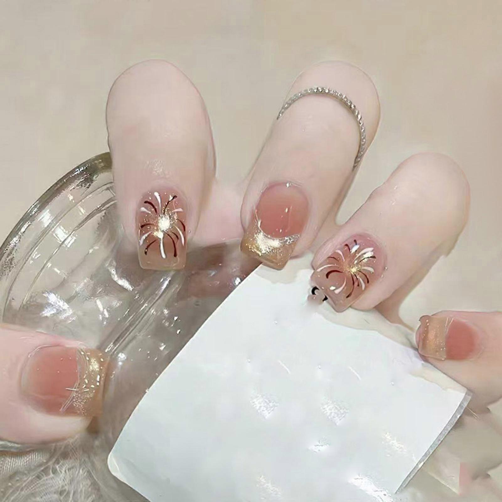 24Pcs Glitters Cats Eye Press on Nail Square Fake Nail Full Cover Glues on Nail Acrylic Artificial Nail Stick on Nail