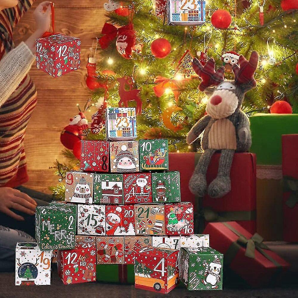 24 Pcs Christmas Decorations Advent Calendar Boxes Diy Countdown Gift Boxes For Kids And Family Lovely Xmas Party Present