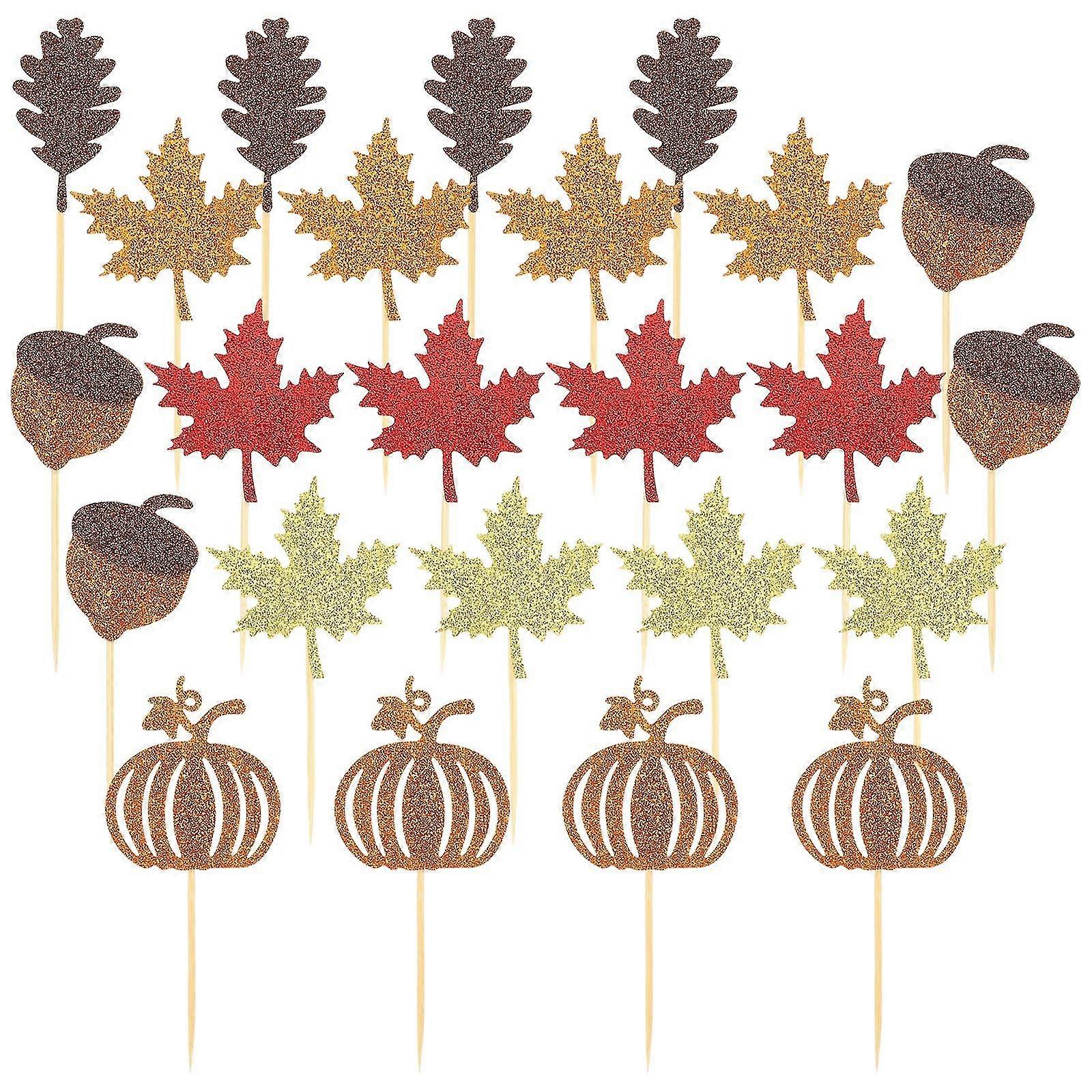 24 Pcs Jewelry Accessories Fall Cupcake Toppers Thanksgiving Toothpicks Autumn Leaf Cupcake Topper Party Cake Picks Z